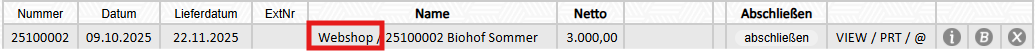 | ls | netto | Nettobetrag wird in der LS-Übersicht angezeigt ![]() |