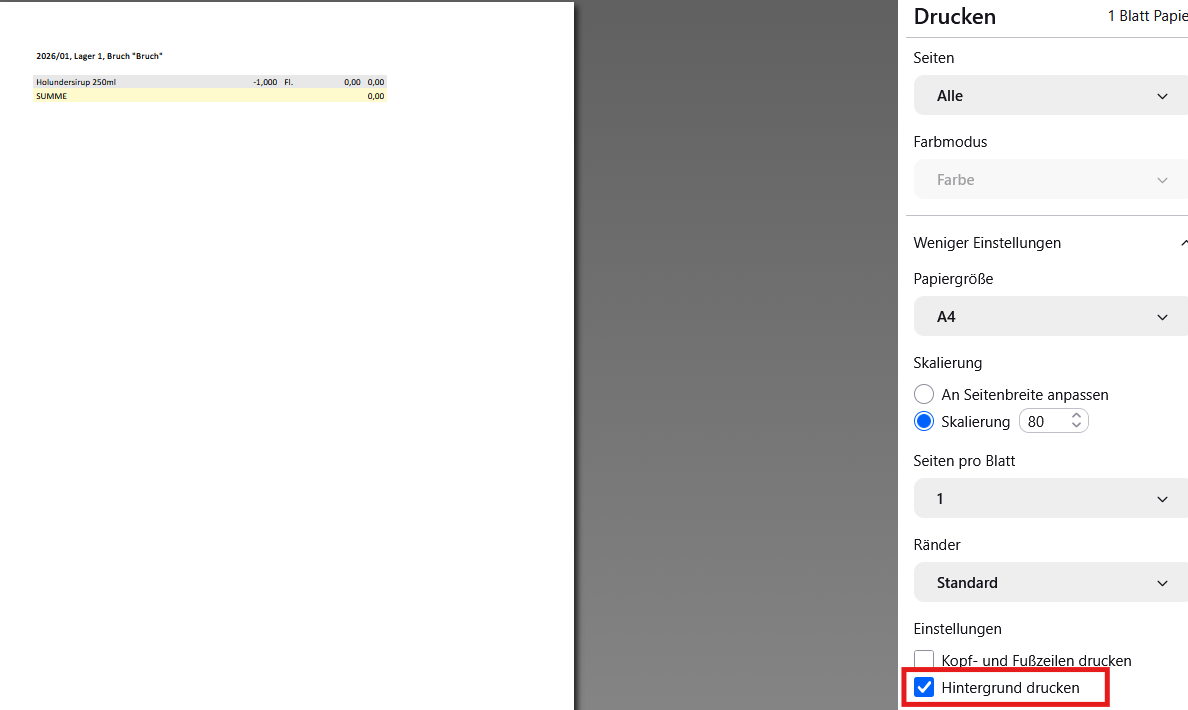 Diese Auswertung kann über den Browser gedruckt bzw. als PDF abgespeichert werden