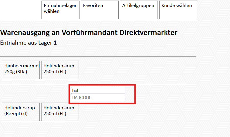 - Über das Barcodefeld kann der Barcode des jeweiligen Artikels abgescannt werden