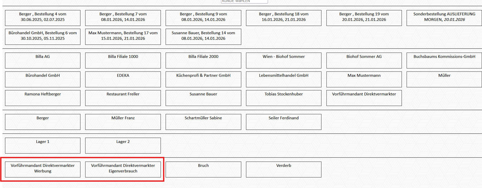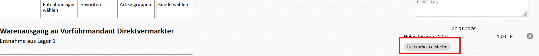 Um Eigenverbrauch und/oder Werbung im System zu erfassen, steht der Warenausgangsschirm zur Verfügung. Dieser kann auf zwei Wegen aufgerufen werden: