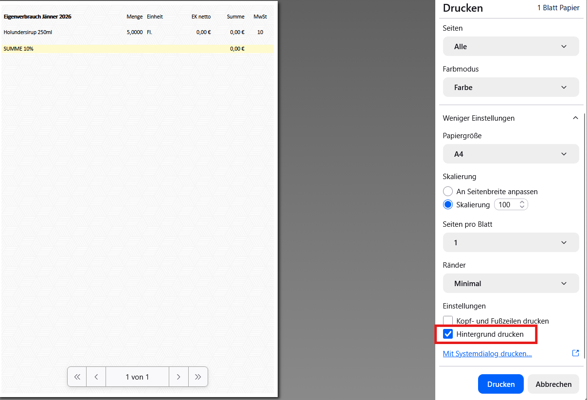Bevor das PDF abgespeichert wird, ist es sinnvoll den Haken bei "Hintergrund drucken" zu setzen, damit das PDF übersichtlicher formatiert wird: