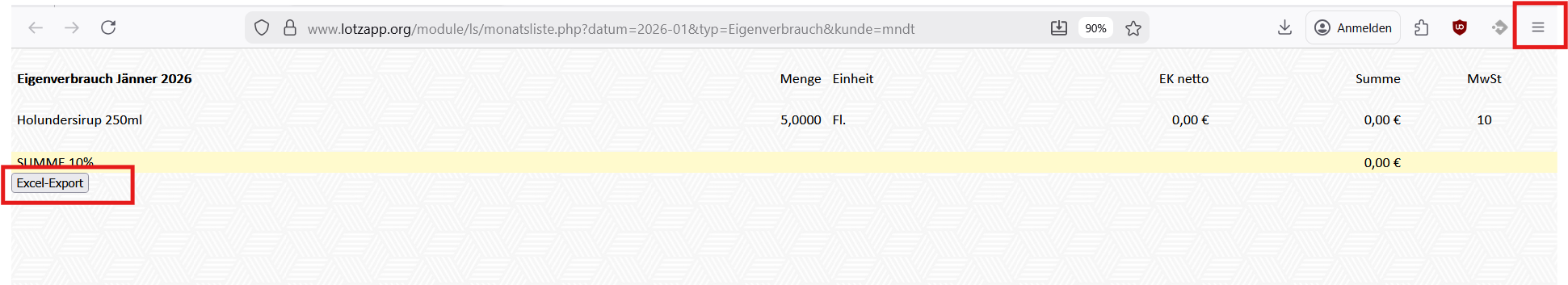 - Modul Lieferscheine - im Datumsfeld über den Button "Eigenverbrauch" das gewünschte Jahr/Monat/Zeitraum auswählen - Klick auf "Eigenverbrauch" oder "Werbung"