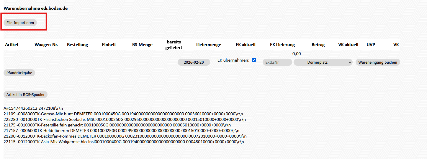 Um einen Wareneingang mit einem BNN-File zu erfassen, gehe wie folgt vor: