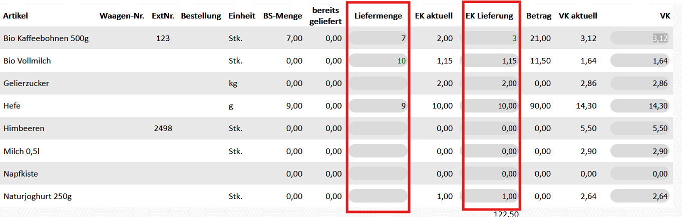 3. Lieferamenge eingeben & falls nötig den EK-Preis anpassen