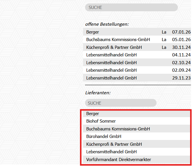 Es werden nur die Artikel angezeigt, die bei dem jeweiligen Lieferanten im Modul Artikel zugeordnet wurden