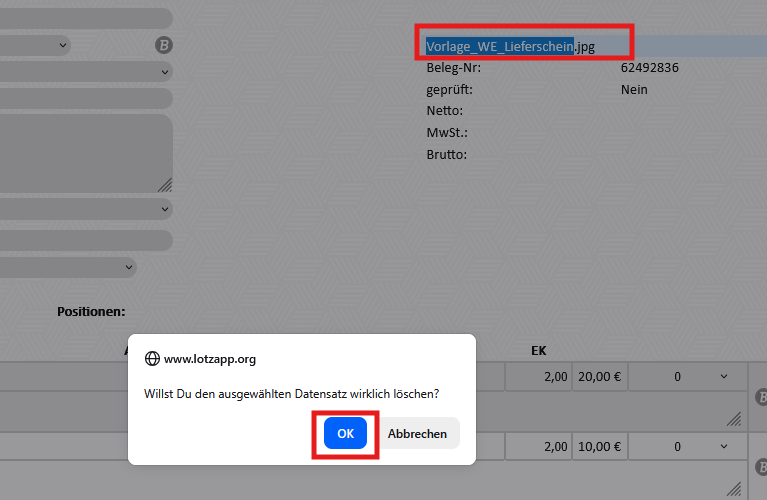 WE-Lieferschein hochladen & löschen