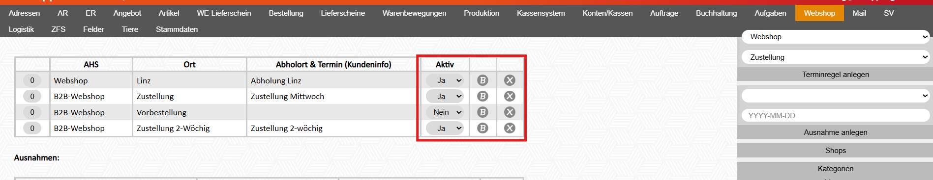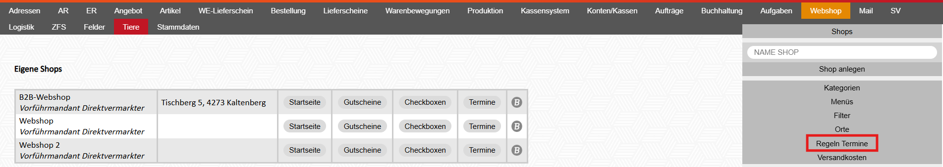 1. Modul Webshop - Shops - Regeln Termine